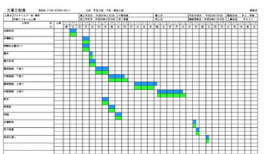 いつ・どこを・どんな段取りで工事するのかを詳細に記載した工程表です。ご家族の皆様の生活サイクルや天候などを踏まえ、工事実施時期を決定していきます。