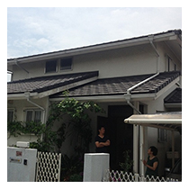 高圧洗浄から始まり、溶剤型シリコン樹脂遮熱塗料を丁寧に塗装しました。カラーベスト屋根塗装には重要になる『縁切り』タスペーサーを使用しました。