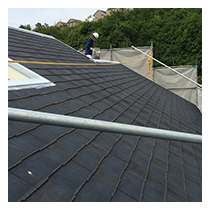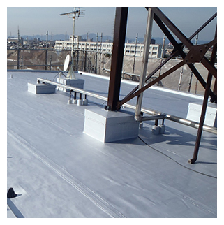 塗料は、外壁に水性シリコン樹脂艶消し。屋上はシート防水。ベランダはウレタン防水。