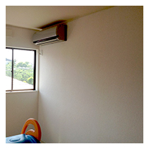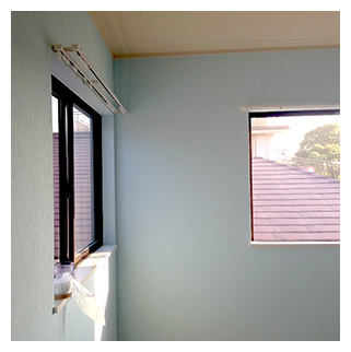 お子さんのお部屋の壁の塗装リフォーム。好きな色に簡単に模様替えできます。塗料は、環境に配慮した安全塗料。学校や病院の内部にも使用する塗料です。