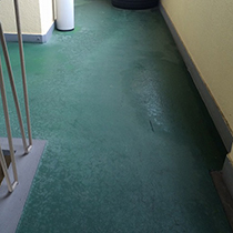 雨漏りが発生していたこの防水。コンクリート目地をしっかり処理して塗膜防水材を塗布。防水材もいろいろありますが、比較的予算を抑えられるのが塗膜防水の特徴でもあると思います。もちろん防水性能もしっかりしていますが、塩ビシート防水に比べれば次回メンテナンス時期は早いかもしれません。