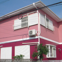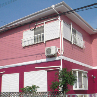 外壁は、モルタル壁で目地や壁などにクラックが発生していましたが、しっかり処理したのち、かわいらしいカラーで仕上げました。